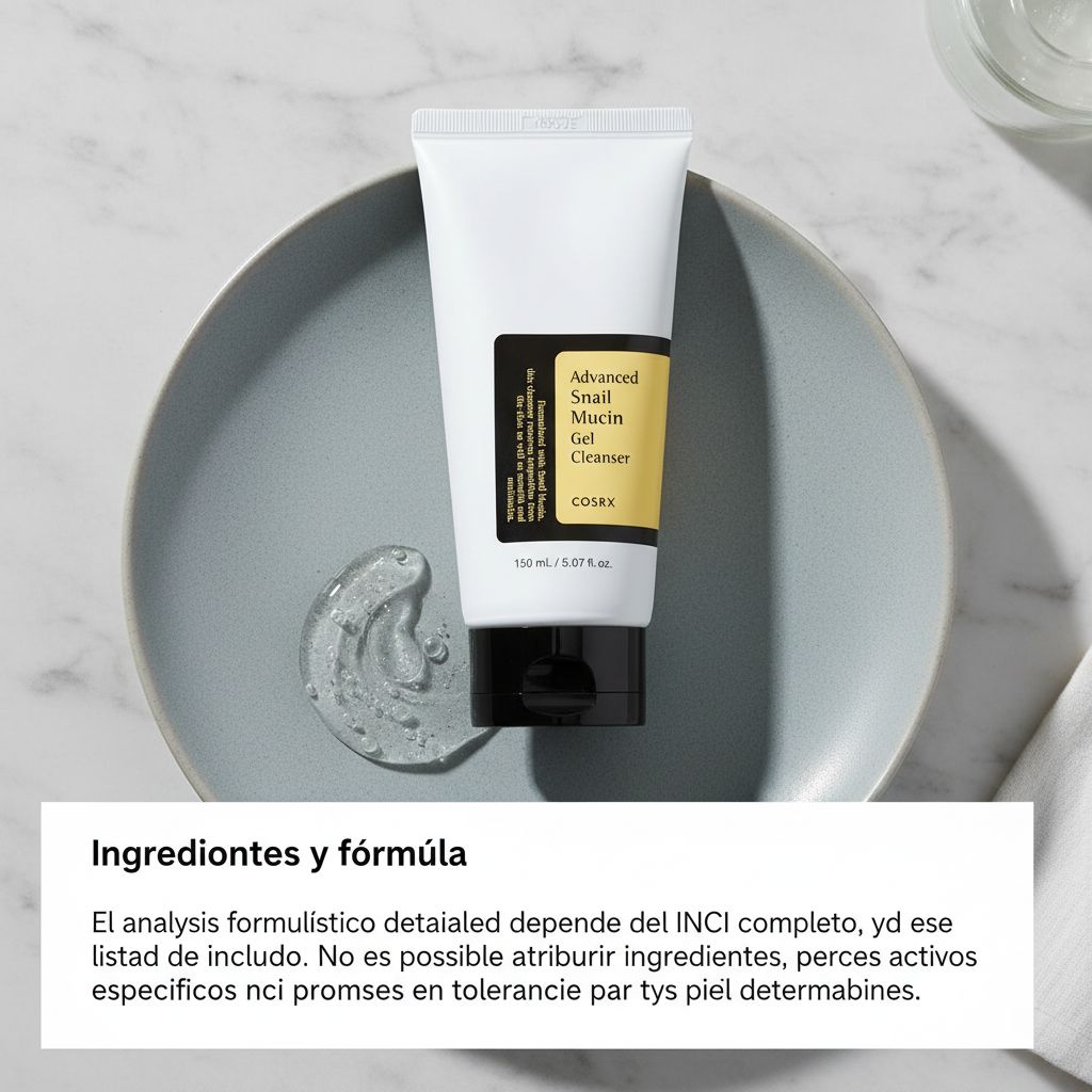 En el caso de COSRX Advanced Snail Mucin Gel Cleanser, el análisis formulístico detallado depende del INCI completo, y ese listado no está incluido en los datos proporcionados. Sin esa información, no corresponde atribuir ingredientes concretos, porcentajes, activos específicos ni promesas de tolerancia para tipos de piel determinados.